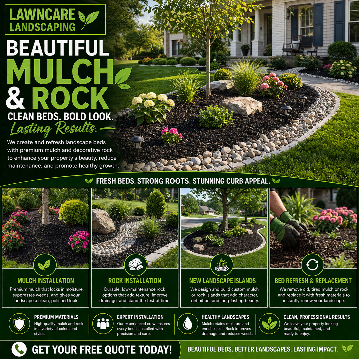 Mulch & Rock ✳︎ Drainage Solutions ✳︎ Mowing ✳︎ Snow Removal ✳︎ Lawncare ✳︎ Decks ✳︎ Patios ✳︎ Retaining Walls ✳︎ Gazebos & Pavilions ✳︎